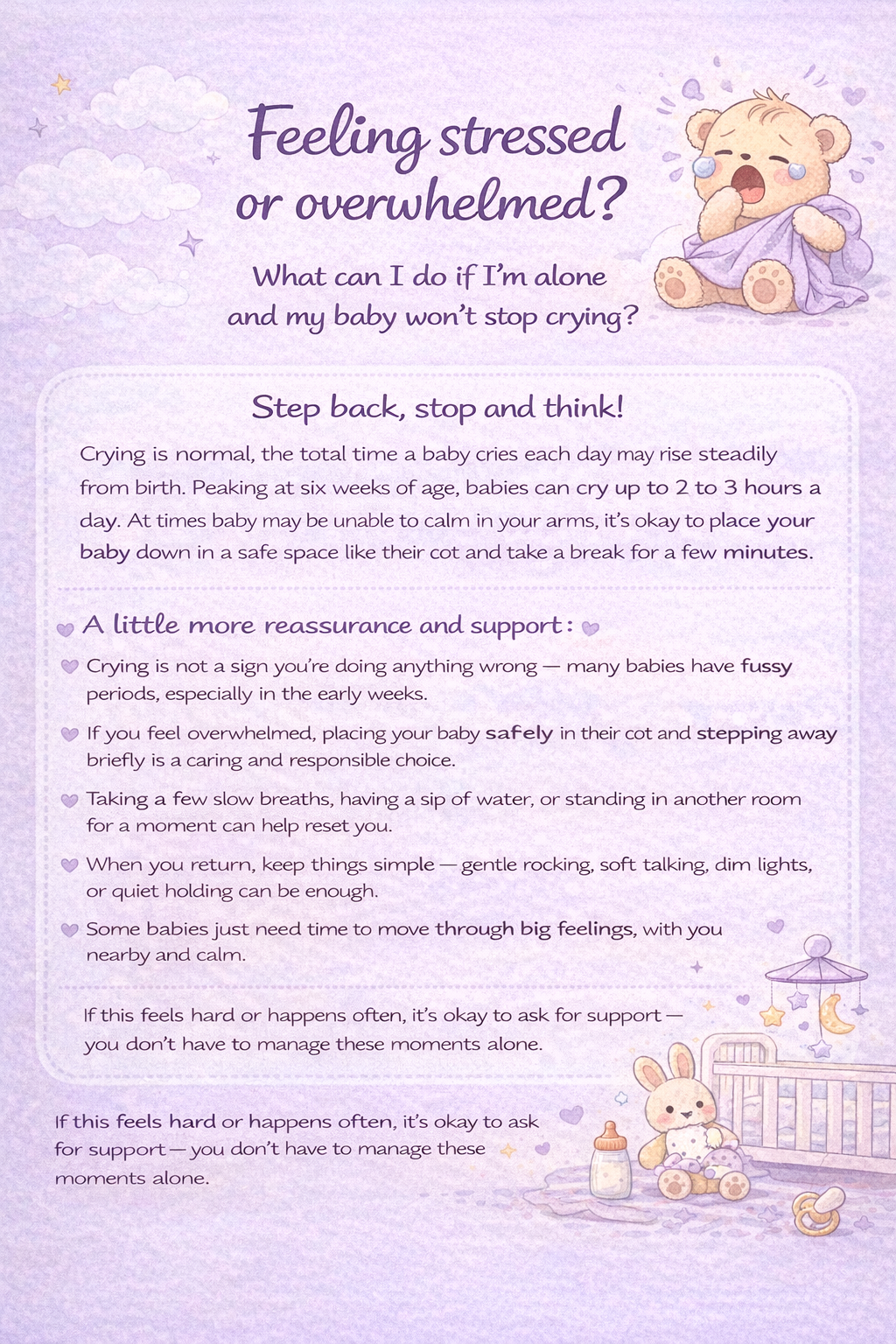 A supported parent is a calmer, more confident parent — and that benefits your baby most of all.